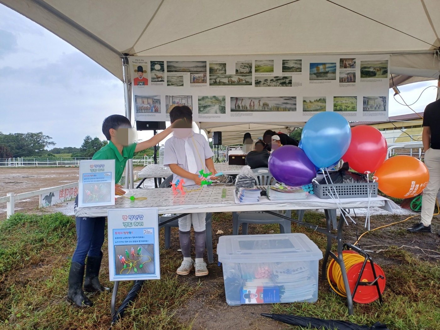 한쪽에는 풍선과 색칠하기, 연필세트, 기념관 홍보책자 등을 마련하였습니다.